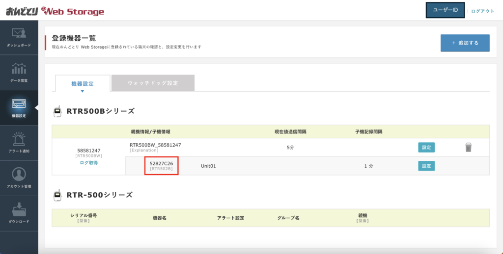 手順3:おんどとりサービスのマイページで端末の「機器番号」を確認する。